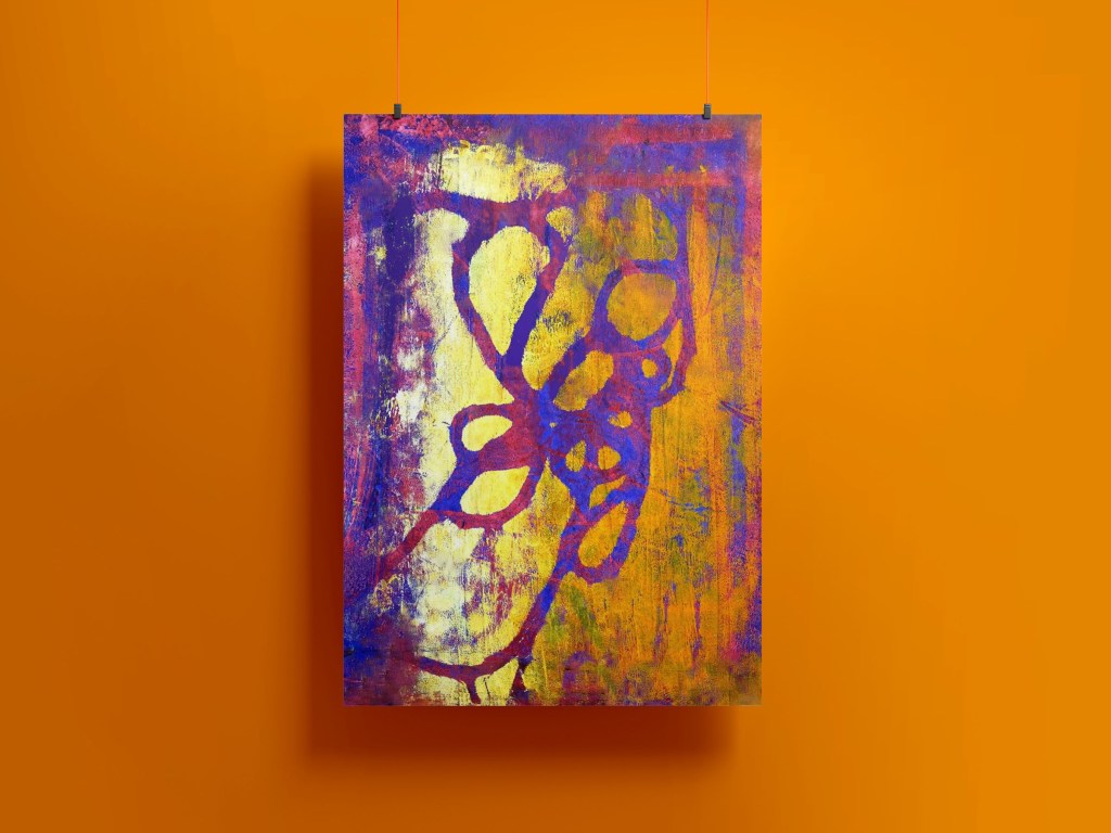 Monoprints is a collection of experiments exploring colour, texture, and the incorporation of natural fibers. Layers and texture are introduced by applying paint through acetate and acrylic screens. Interlaying hemp yarn between the print and screen provides a mask between printed layers, instilling a thread of connectivity between dissimilar applications of colour.