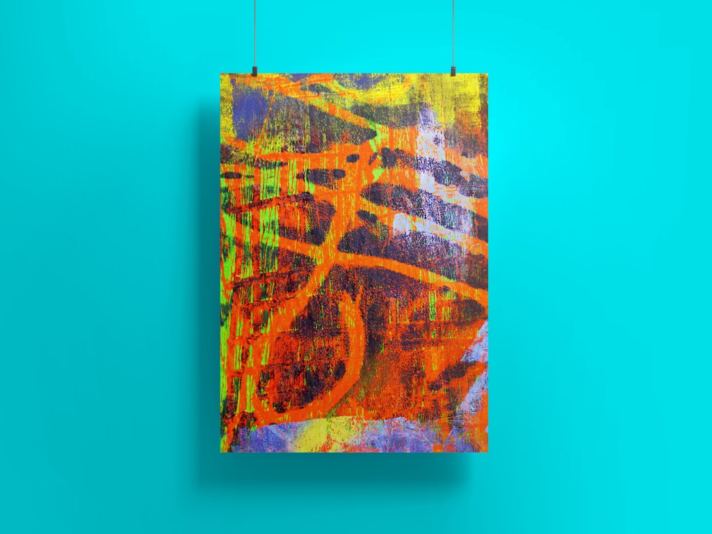 Monoprint implies a single application, one mask delineated by difference in shape and colour from the whole. By monoprinting multiple layers, each piece becomes multiple monoprints, sharing diversity of colour and texture with the greater collection.